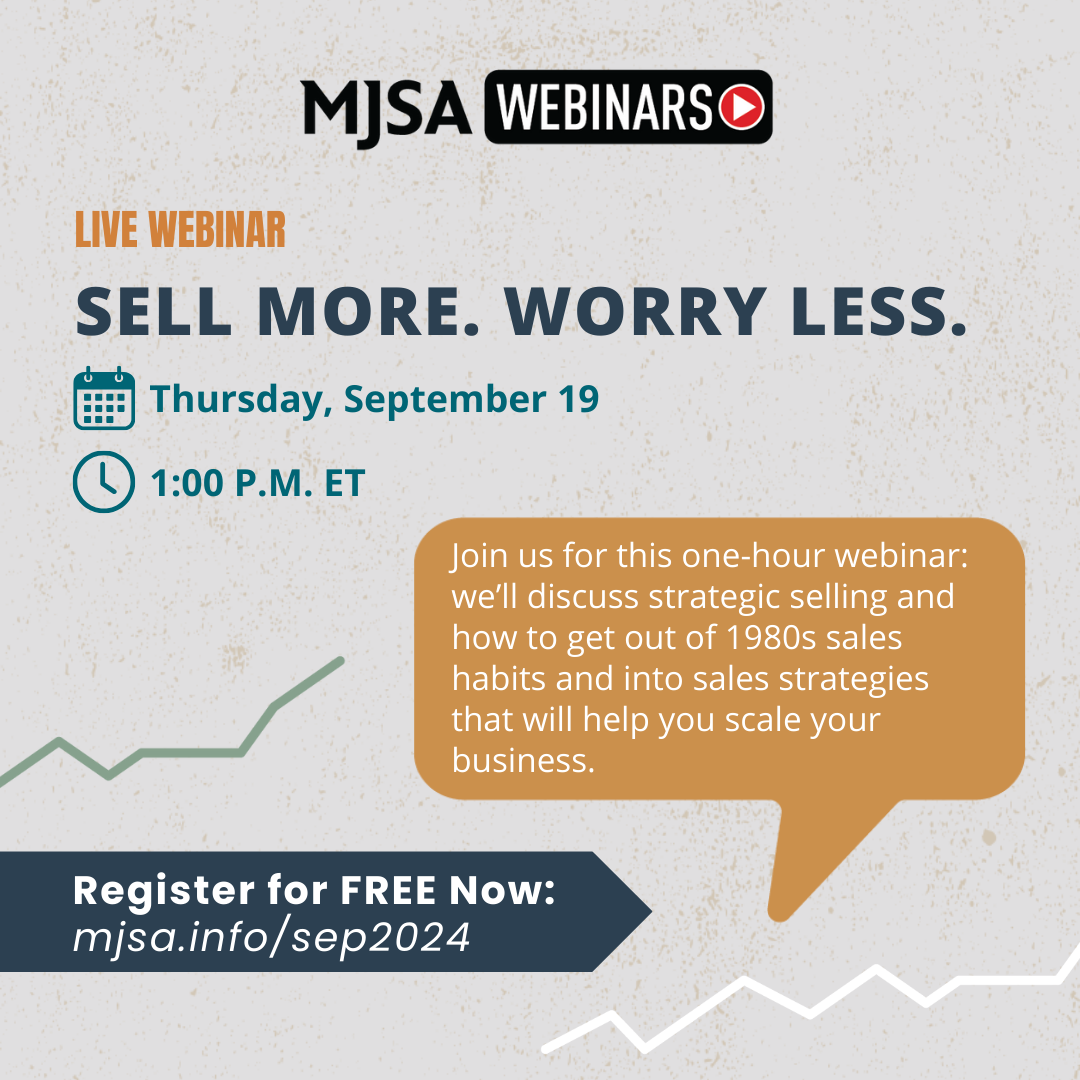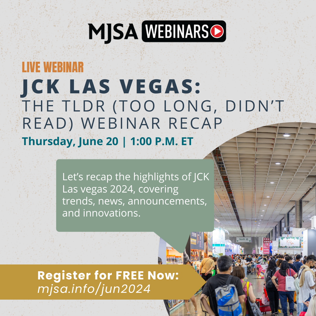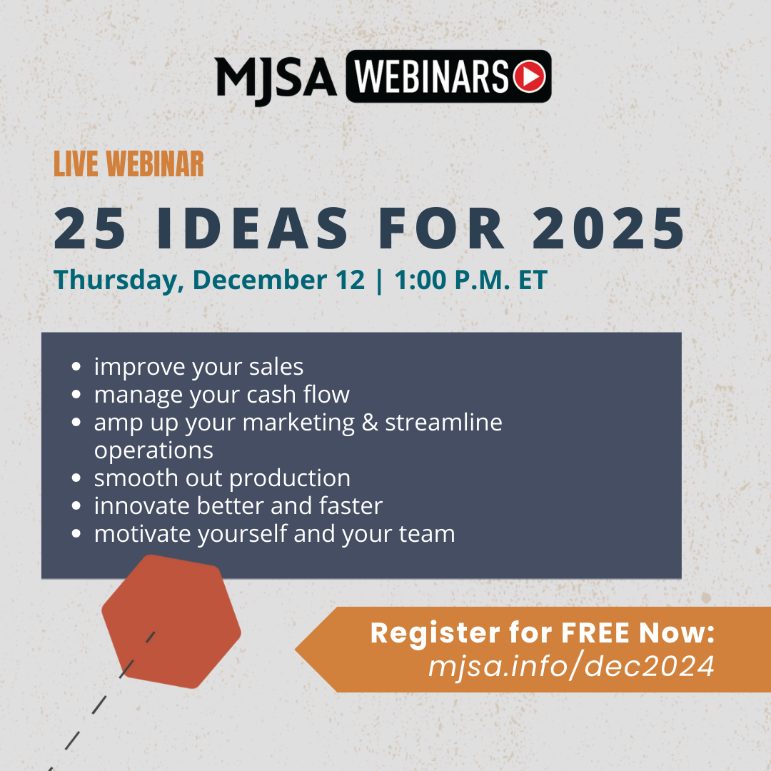 All webinars are offered at no cost. Replays are accessible to MJSA Premier members without charge and are also available for purchase through the MJSA Store.